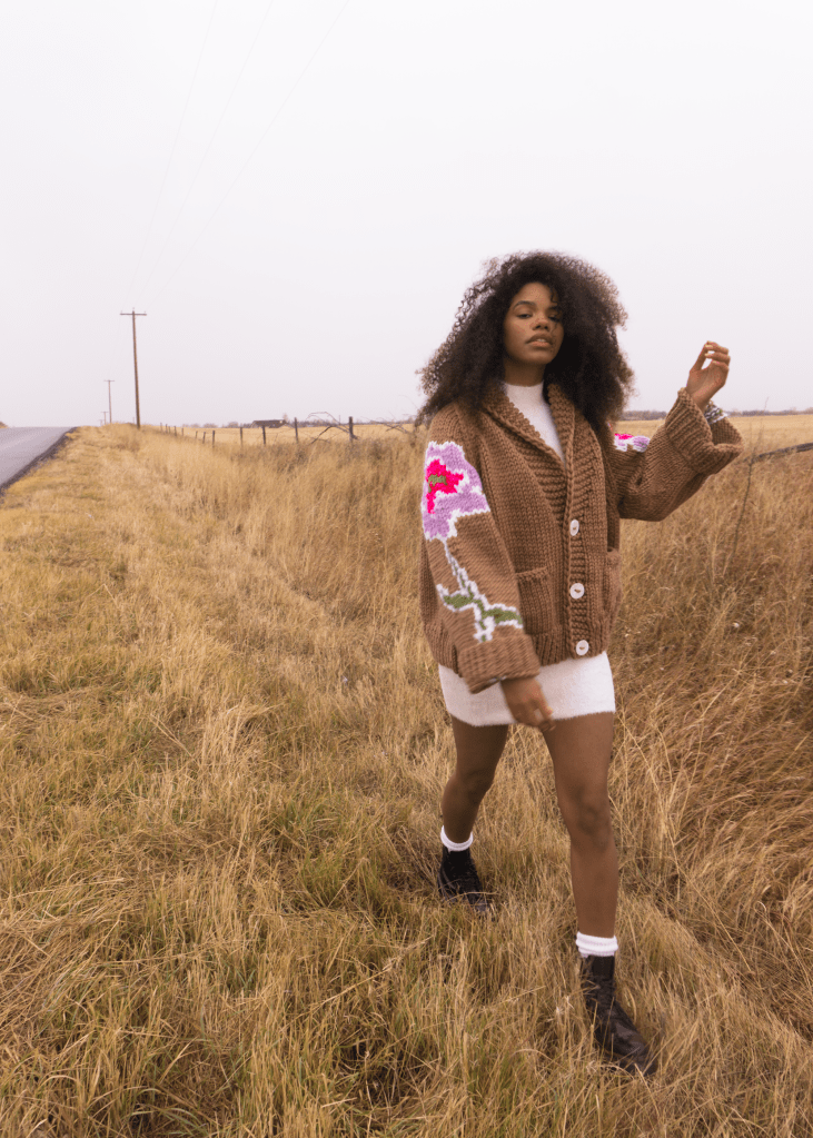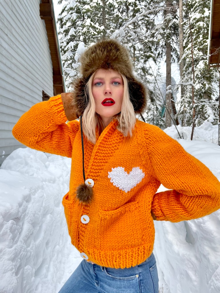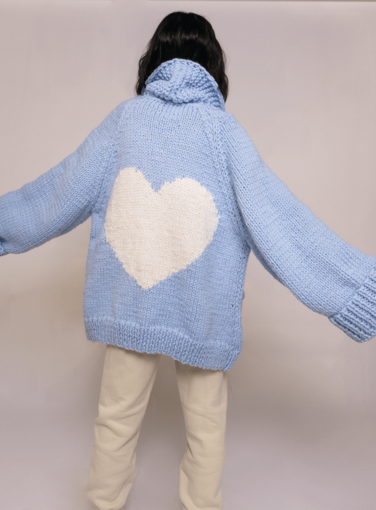 The Classic Short Cardi is the starting point for all GOGOs. It is short in its length being 21″ and it has a straight body. It is designed to sit at or above the hip, however on some petite frames this style is the perfect length to give you an oversized feel without overwhelming your frame. The arms are straight with a big rib at the cuff to keep the sleeve above your hand.